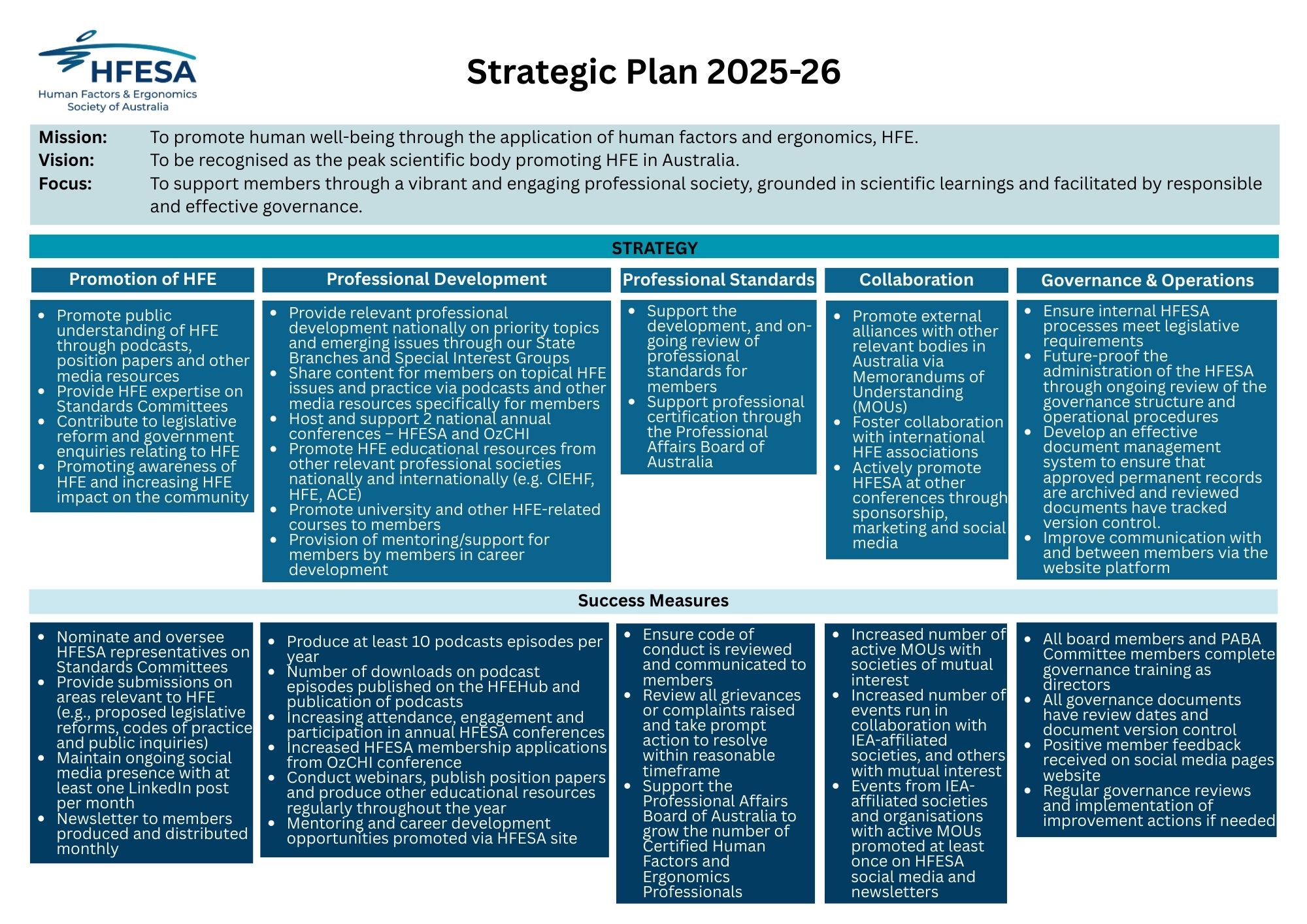 We will still be known as HFESA or the Society.